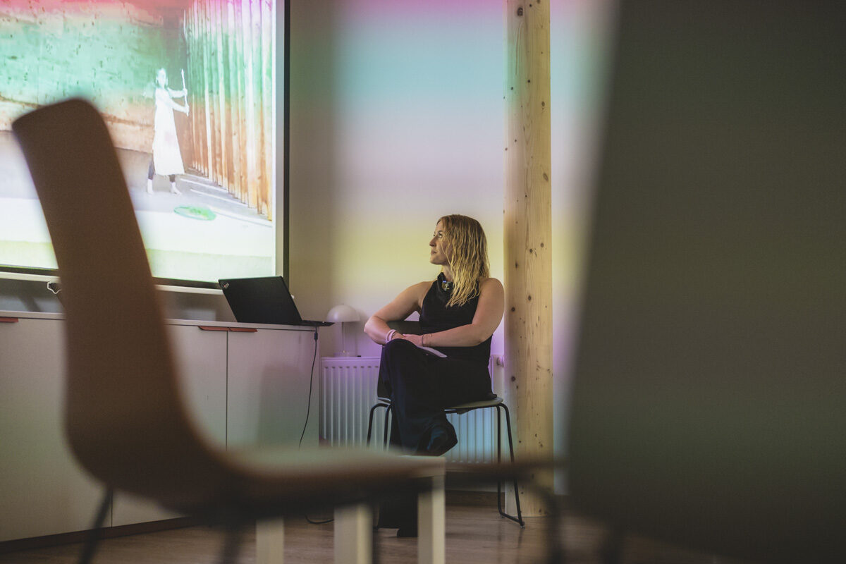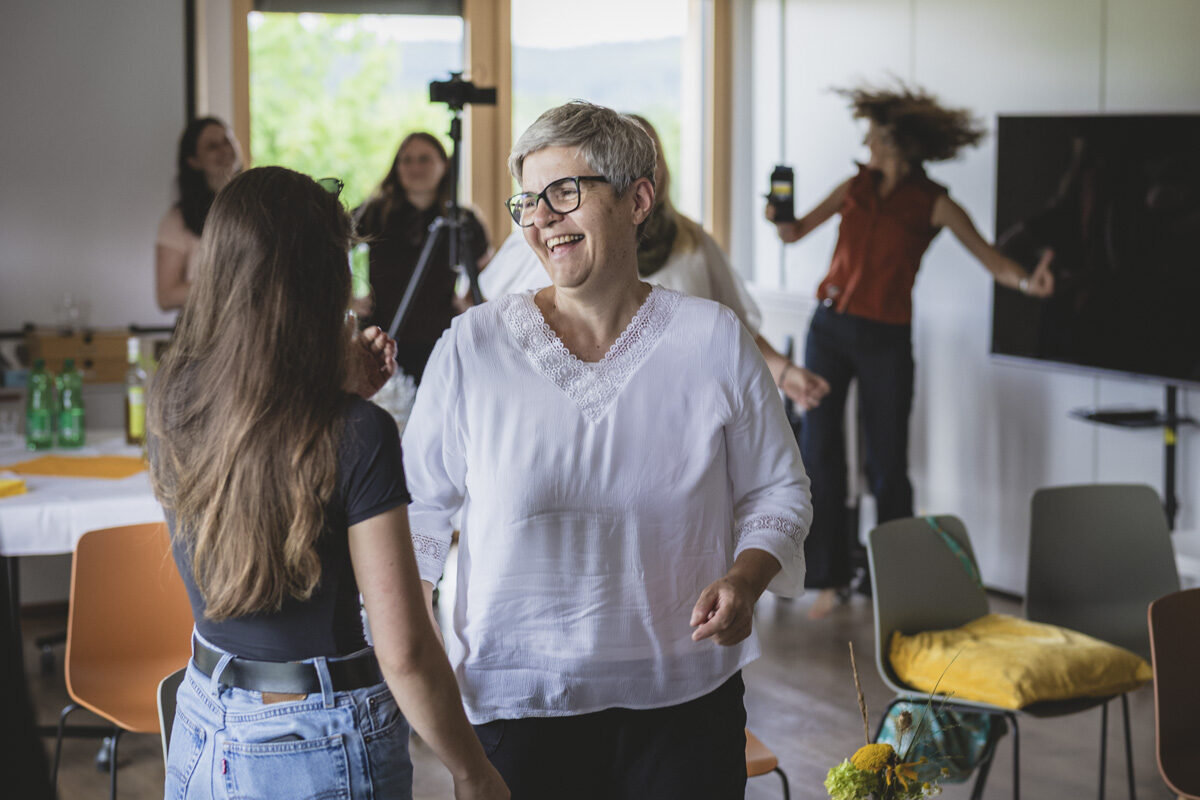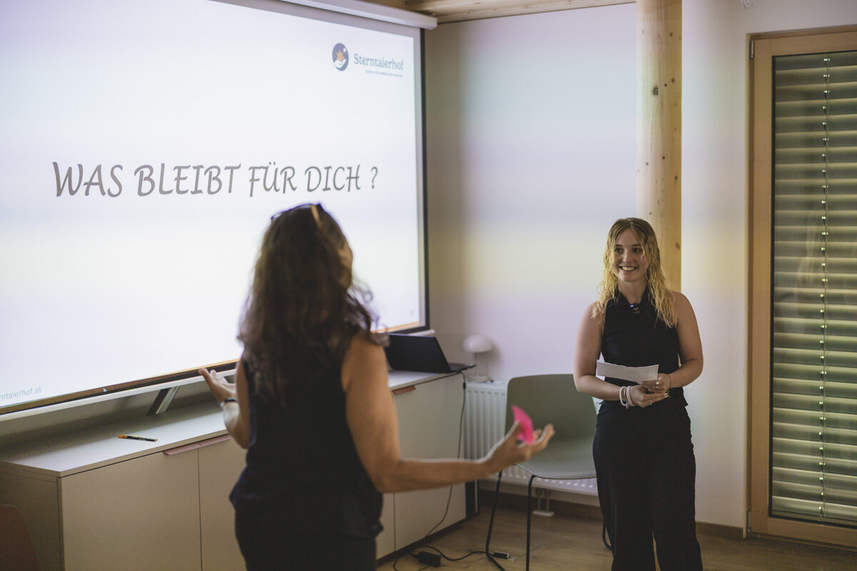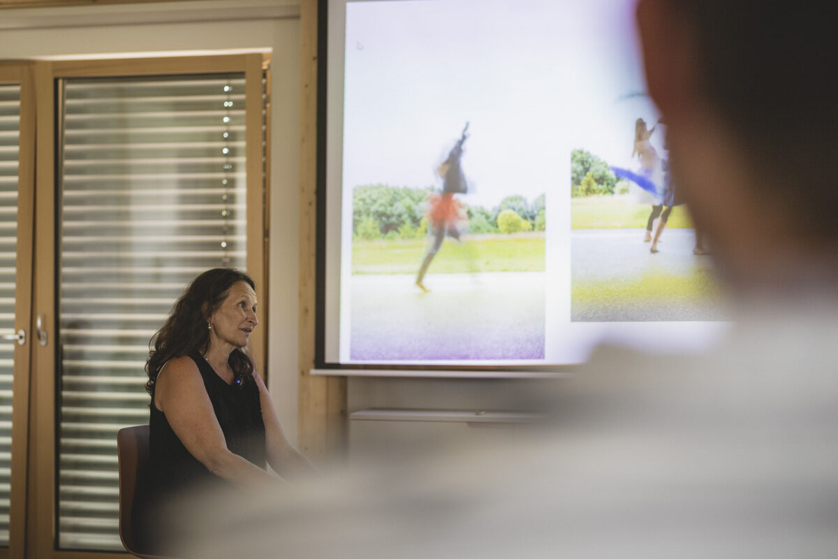 Im Mittelpunkt stand der berührende Dialog zwischen unserer Tanz- und Ausdruckstherapeutin Claudia Ritter und der 19-jährigen Sophie. Sophie kommt mit ihrer Familie seit vielen Jahren an den Sterntalerhof – seit ihre Schwester im Wachkoma liegt. Umrahmt von Sommerwiesenblumen und nach einem gemeinsamen Tanz erzählten die beiden von ihrer therapeutischen Reise, von gemeinsam erarbeiteten Projekten und der Kraft, die im Ausdruck durch Bewegung liegt. Ein besonderes Highlight waren die Videos der gemeinsem erarbeiteten Tänze der vergangenen Jahre – ein seltener Blick hinter die Kulissen der Tanztherapie.