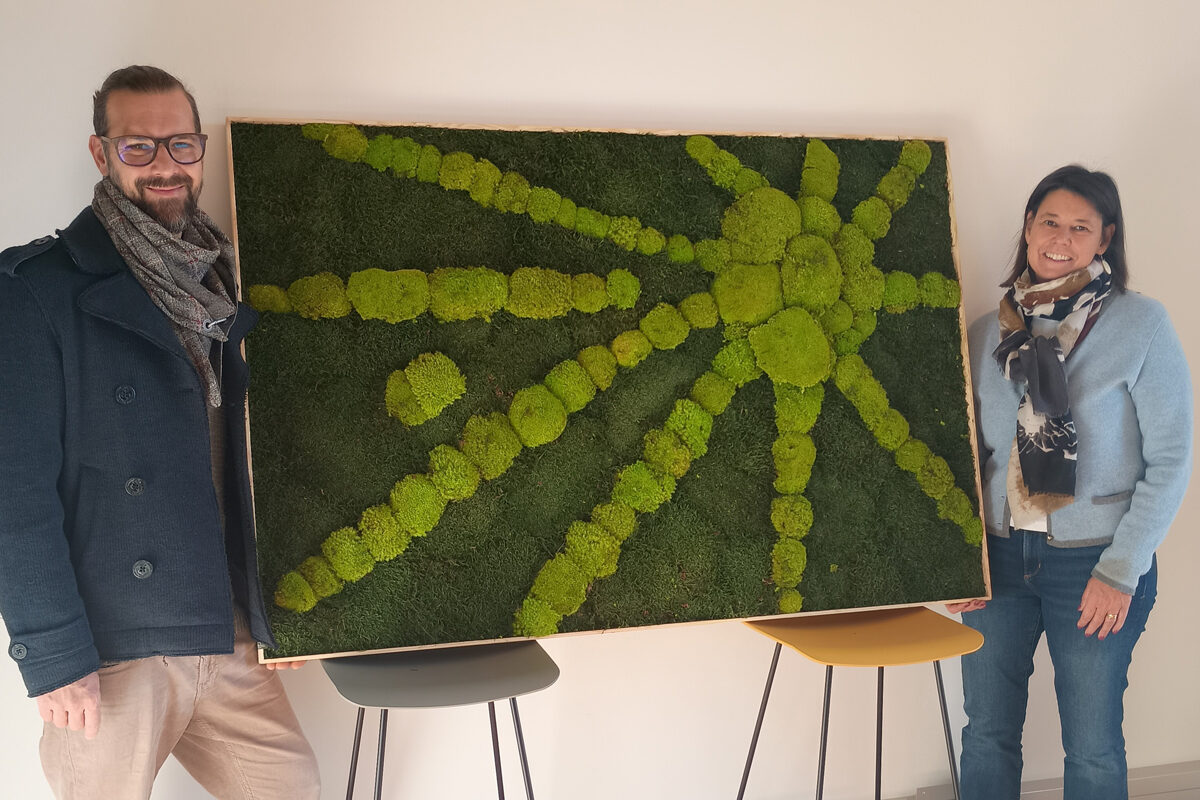 sowie den Besucherinnen und Besuchern seines Geschäftslokals in Graz die während des DesignMonatGraz gemeinsam ein Bild aus Wald- und Kugelmoos gestaltet haben. Die entstandene Sonne strahlt nun in den Räumlichkeiten am Sterntalerhof und wir freuen uns sehr darüber!